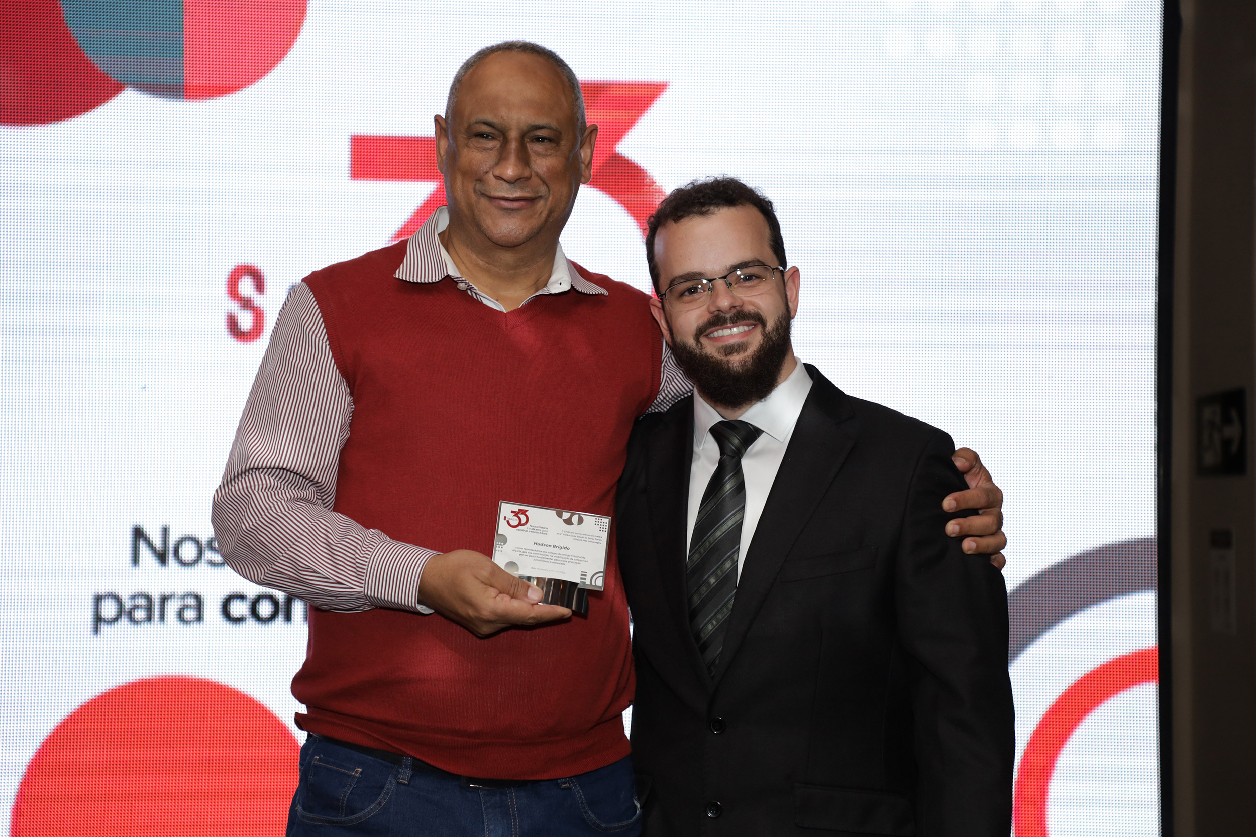 Além do agradecimento pela dedicação pessoal, a cerimônia também teve como objetivo celebrar grupos de pessoas que contribuíram e que seguem contribuindo para o fortalecimento do SINJUS, que foram representados por um de seus membros.